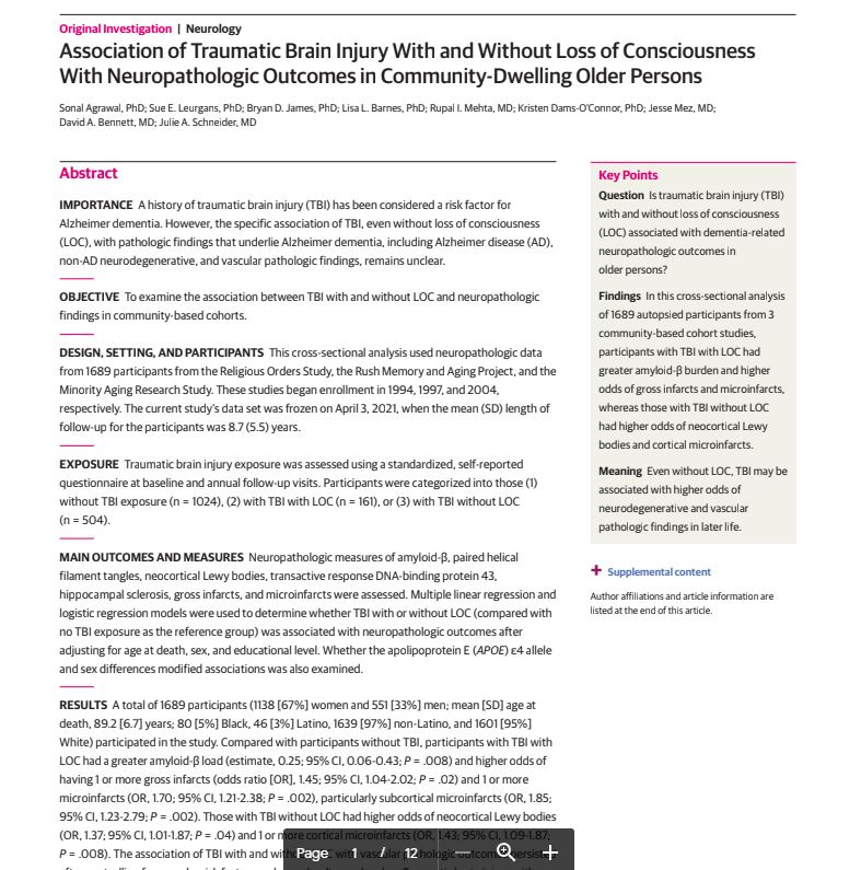 JAMA Study mTBI April, 2022.
