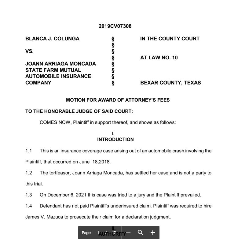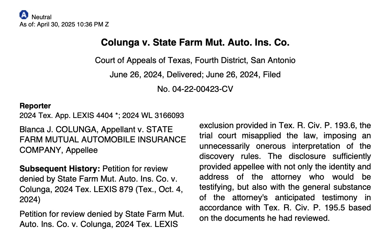 Colunga v. State Farm Mut. Auto. Ins. Co.